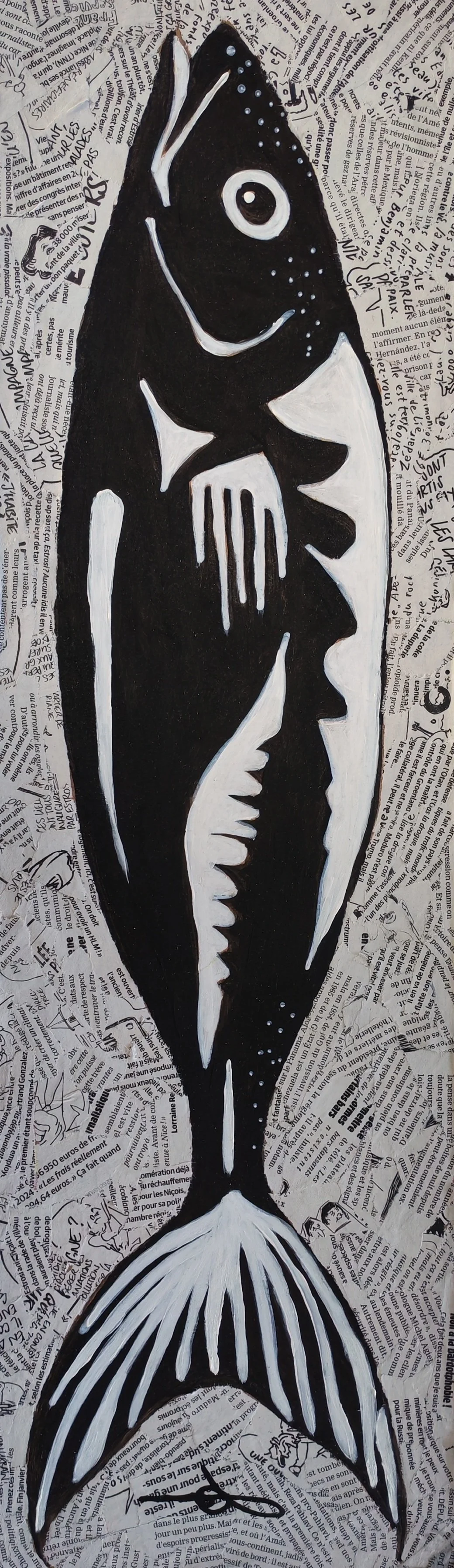Poisson noir sur fond Charlie petit format allongé